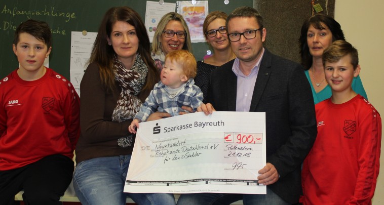 Schulleiter Marco Speckner erhielt der zweijährige Louis Stabler den Scheck,