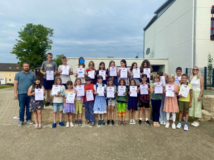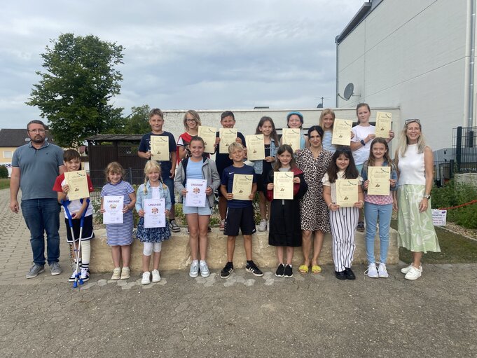 Am letzten Schultag des Schuljahres fand im Rahmen einer Schülervollversammlung auf dem neu angelegten Pausenhof eine besondere Ehrung statt: Viele Schülerinnen und Schüler der Graf-Botho-Schule zeigten im vergangenen Schuljahr herausragende Leistungen in verschiedenen Bereichen und bekamen daher durch die Schulleitung Urkunden und Gutscheine überreicht, die Veranstaltung wurde musikalisch umrahmt durch Liedbeiträge der Klassen 1ab2ab3b unter der Leitung von Frau Hübner.