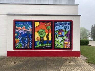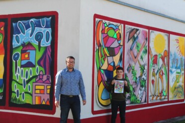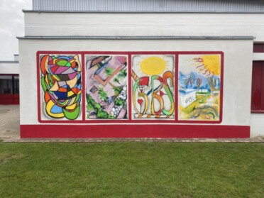 „Die Graffiti Aktion ist der Abschluss unseres schulinternen Malwettbewerbes“, erklärt Schulleiter Speckner. „Alle Kinder der Schule haben sich mit einem Bild an dem Wettbewerb zur Verschönerung des Pausenbereiches beteiligt.“ Die Siegerbilder haben es nun an die Außenwand des Paushofes geschafft. Entstanden ist ein echter Blickfang, der den Eingangsbereich der Schule deutlich aufwertet. „Es ist schon ein Jammer, dass die Aktion unter Ausschluss der Öffentlichkeit über die Bühne gehen musste“, meint der Pottensteiner Rektor. Ursprünglich nämlich war angedacht, das Kunstwerk im Rahmen des für 16.05.2020 geplanten geschichtlichen Schulfestes in Kooperation mit dem Fränkische-Schweiz-Museum Tüchersfeld vor einem breiten Publikum entstehen zu lassen und in diesem Rahmen auch die siegreichen Schüler zu ehren. „Da hat uns leider das Corona-Virus einen Strich durch die Rechnung gemacht“, bedauert der Schulleiter und ergänzt: „Da wir natürlich aber deswegen den Malwettbewerb nicht im Sande verlaufen lassen wollten, haben wir uns entschlossen, die Bilder auch ohne Zuschauer an die Wand zu bringen.“ Möglich war die Aktion nur mit Hilfe der Unterstützung der Stadt Pottenstein und des Elternbeirates der Schule, die sich die Finanzierung teilten.