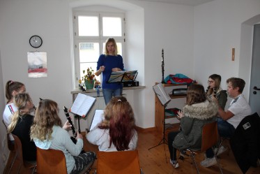 Einen ganzen Tag lang zog sich die Bläserklasse der Graf-Botho-Schule in das pottensteiner Pfarrheim zurück. Unter der Leitung von Sabine Deak und der tatkräftigen Unterstützung der beiden Musiklehrer Robert Merkel und Marianne Held wurde rund um die Uhr geübt und an den Weihnachtsliedern gefeilt, die das Schulensemble im Rahmen der Weihnachtsmarkteröffnung zum besten geben wird. Zur Stärkung gab es dann Pizza für alle. Ein besonderer Dank gebührt Elternbeirat und Förderverein, die den Probentag finanziell unterstützen und dem Pfarramt, das der GBS das Pfarrheim kostenfrei zur Verfügung gestellt hat.