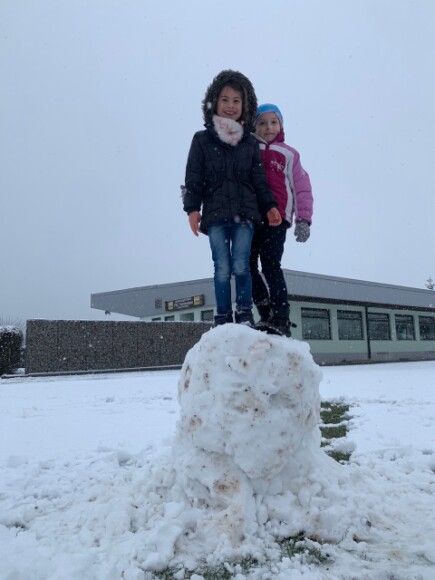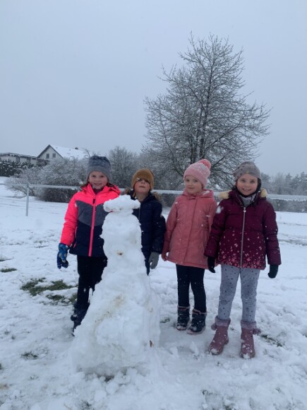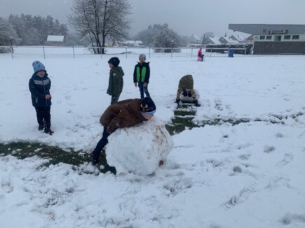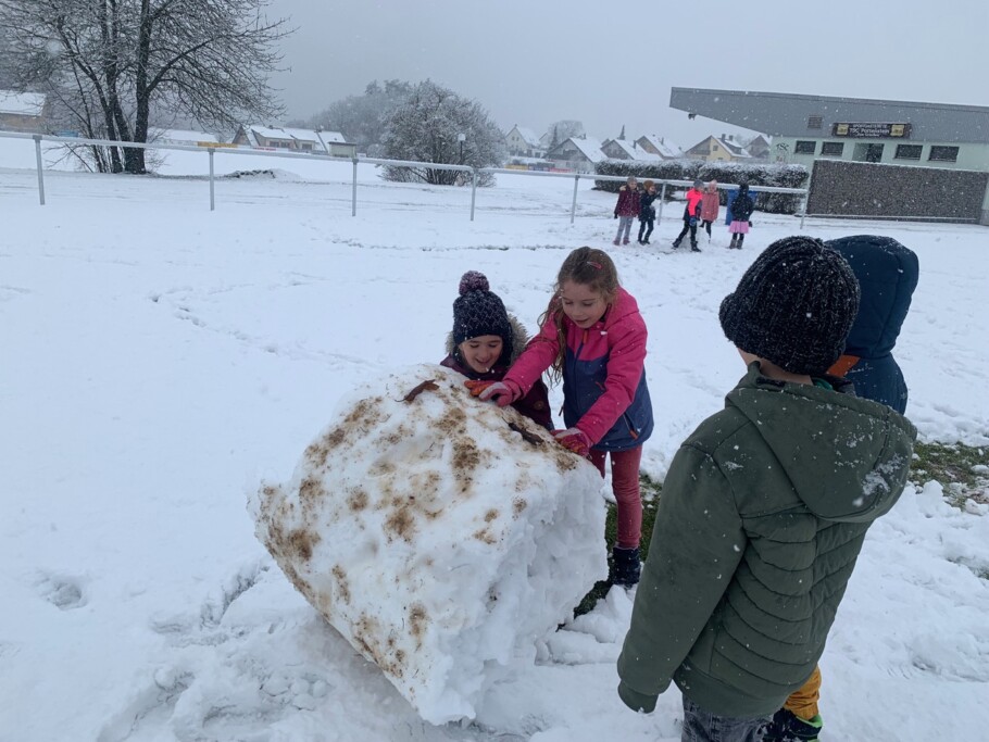 Perfekten Schnee für einen Schneemann gab es am darauffolgenden Donnerstag und so wurden am Sportplatz dann fleißig Schneekugeln gerollt.