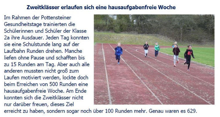 Zweitklässer erlaufen sich eine hausaufgabenfreie Woche (2a) - Graf-Botho-Schule